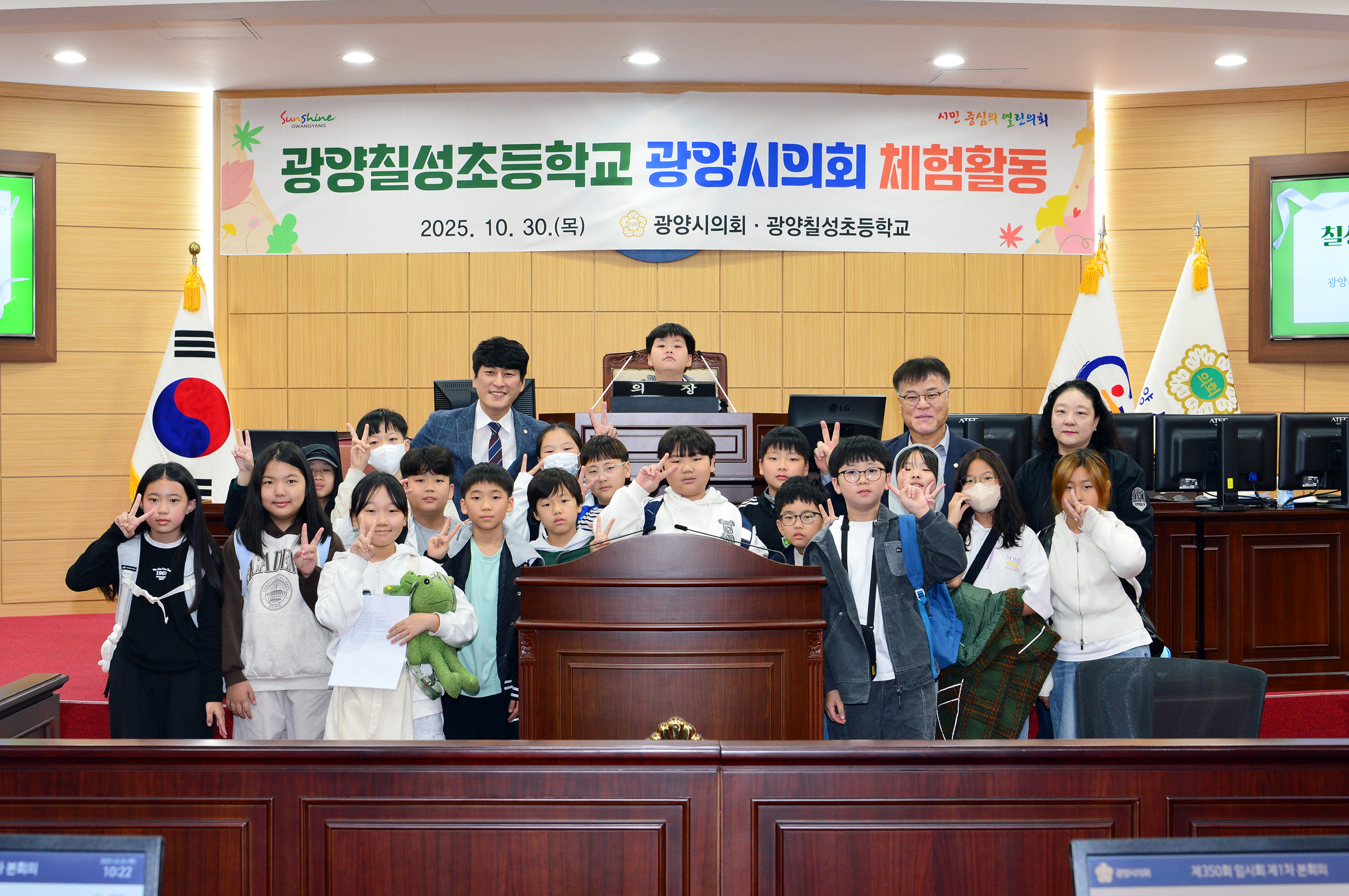 2025년 10월 30일(목) 광양칠성초등학교 학생들이 광양시의회를 방문하여 의회 체험활동을 하였습니다.